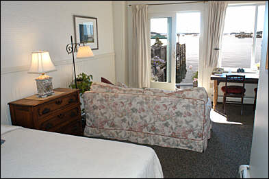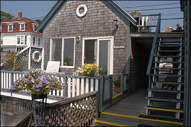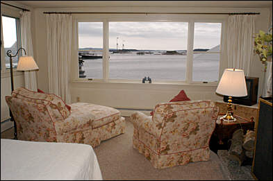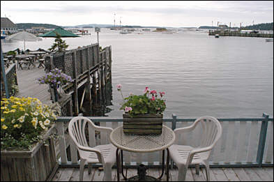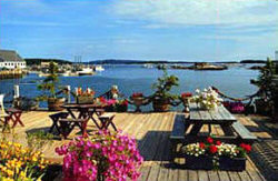 Known for its unique charm and spectacular view of the Penobscot Bay islands, the Inn on the Harbor on Deer Isle offers a perfect romantic waterfront retreat. Built in the 1880’s and perched right on the edge of picturesque Stonington Harbor, this bed and breakfast captures the very essence of Maine’s Downeast island life. Ten of the thirteen individually decorated guestrooms face the sea and enjoy gorgeous views of Isle au Haut, the Windjammers and the island’s fishing fleet. Guests can relax on the spacious flower-covered deck extending out into the harbor and enjoy the tide rising and falling beneath the Inn. They can fall asleep to the sound of nearby Mark Island Light’s foghorn and wake up to the lobstermen heading out to sea. Several of our rooms have wood burning fireplaces and/or private decks. Our accommodations are relaxed and comfortable, all with private baths and sitting areas. The coastal atmosphere, with fresh salt air and brilliant sunny skies, encourages many of our guests to simply put their feet up and relax while watching Stonington’s bustling waterfront. This is Maine’s Downeast island life at its best. |